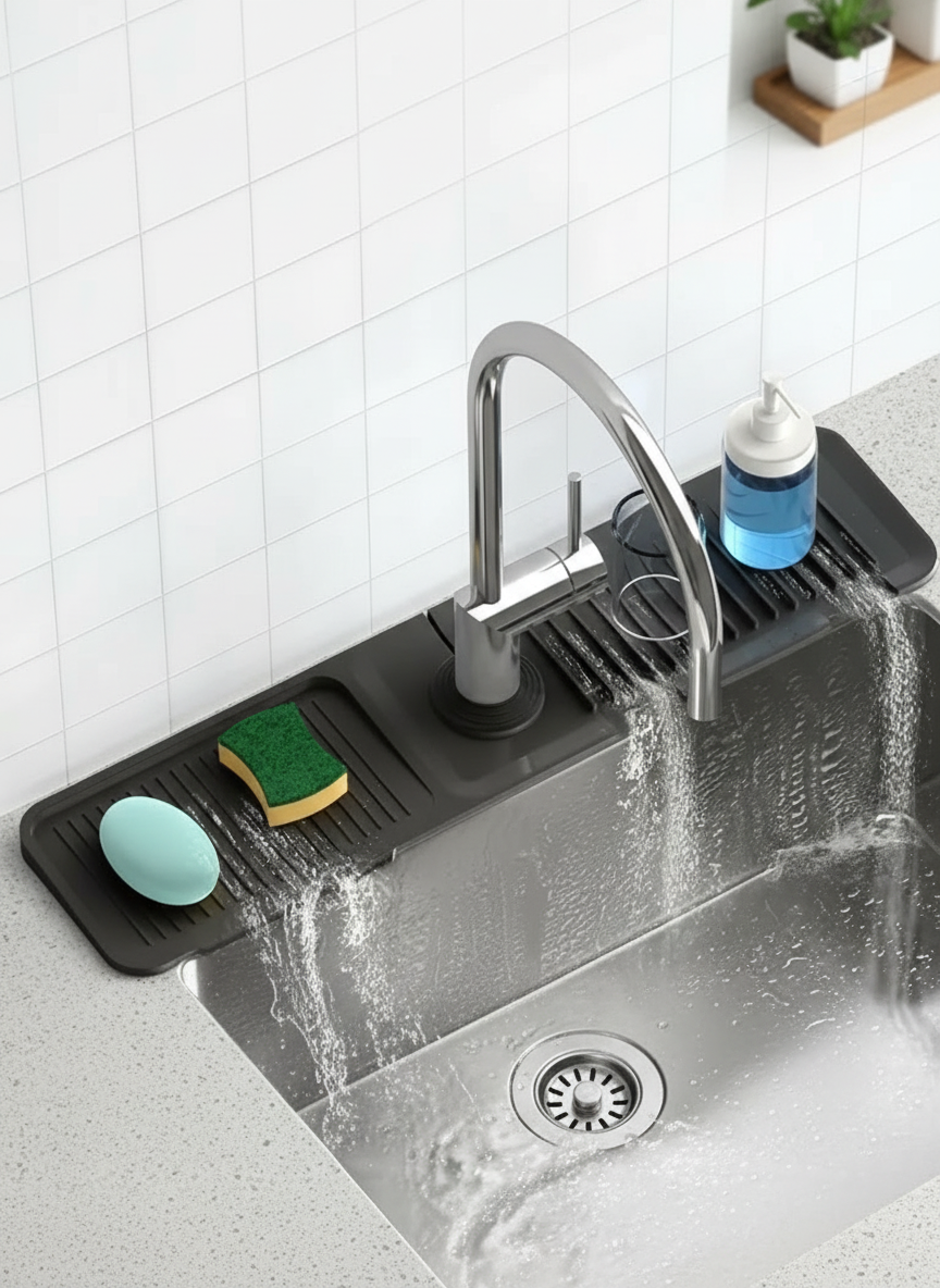 Anti-splash silicone mat that keeps the sink area dry & tidy. π§