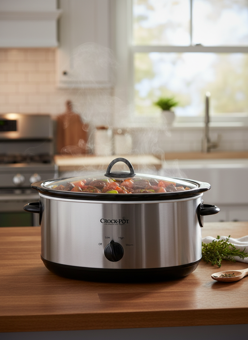 Large stainless-steel slow cooker for easy, set-and-forget meals. Perfect for soups, meats and family dinners. π₯